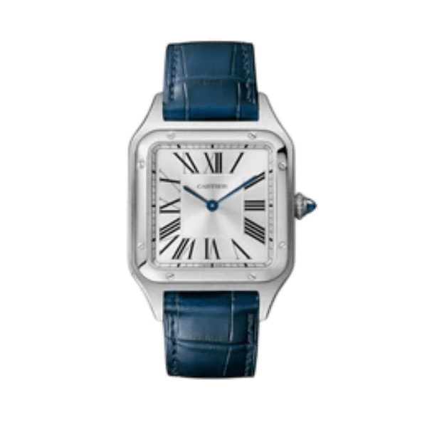 A super clone replica inspired by the Cartier Santos-Dumont Large model. Crafted with stainless steel, a square case, and a hand-wound movement, this piece mirrors the classic elegance of the original. Please note: this is not an original Cartier watch, but a high-quality replica designed for those who appreciate the design at a more accessible price point.